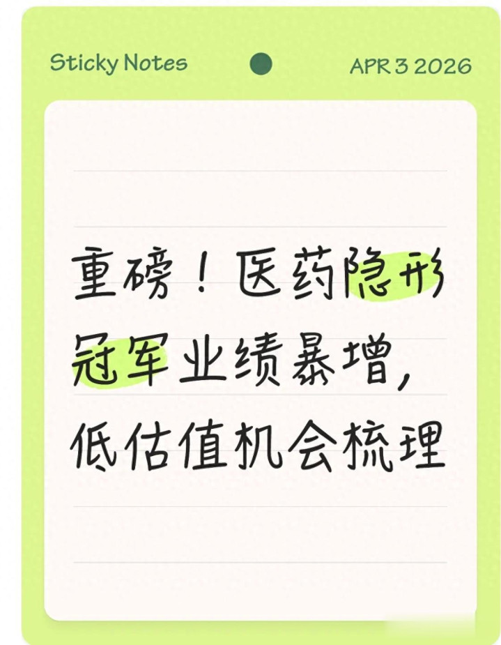 2026年医药行业一季报预告陆续披露,一批深耕细分赛道、此前关注度较低的医药企业业绩表现突出,多家企业净利润实现同比大幅增长,成为板块内的亮眼存在。在市场整体震荡、热门赛道波动加大的背景下,医药板块凭借业绩改善、估值处于相对低位的特点,受到资金关注。今天咱们用真实可查的行业数据、通俗的逻辑,解读医药细分领域业绩增长的行业背景与核心逻辑,梳理低估值医药赛道的行业价值,全程不荐股、不预判股价,只做客观的行业科普与信息分享。